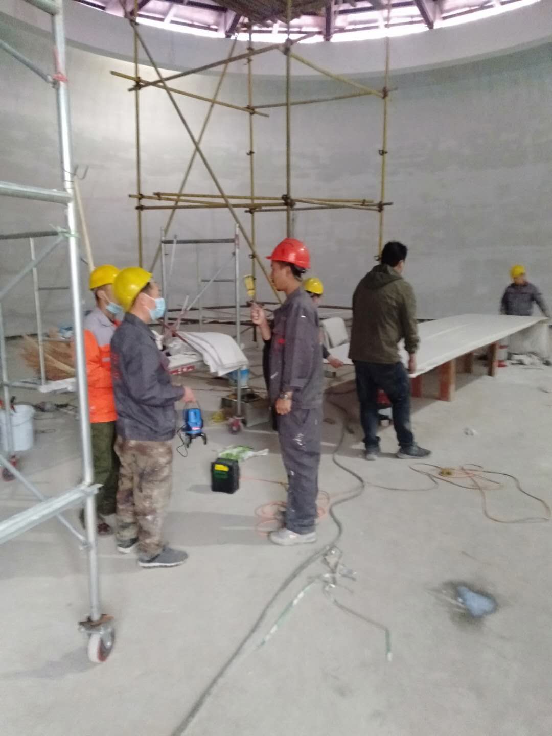 五一節(jié)假日期間,仍有160余名工人在進(jìn)行吊頂、消防等作業(yè)。