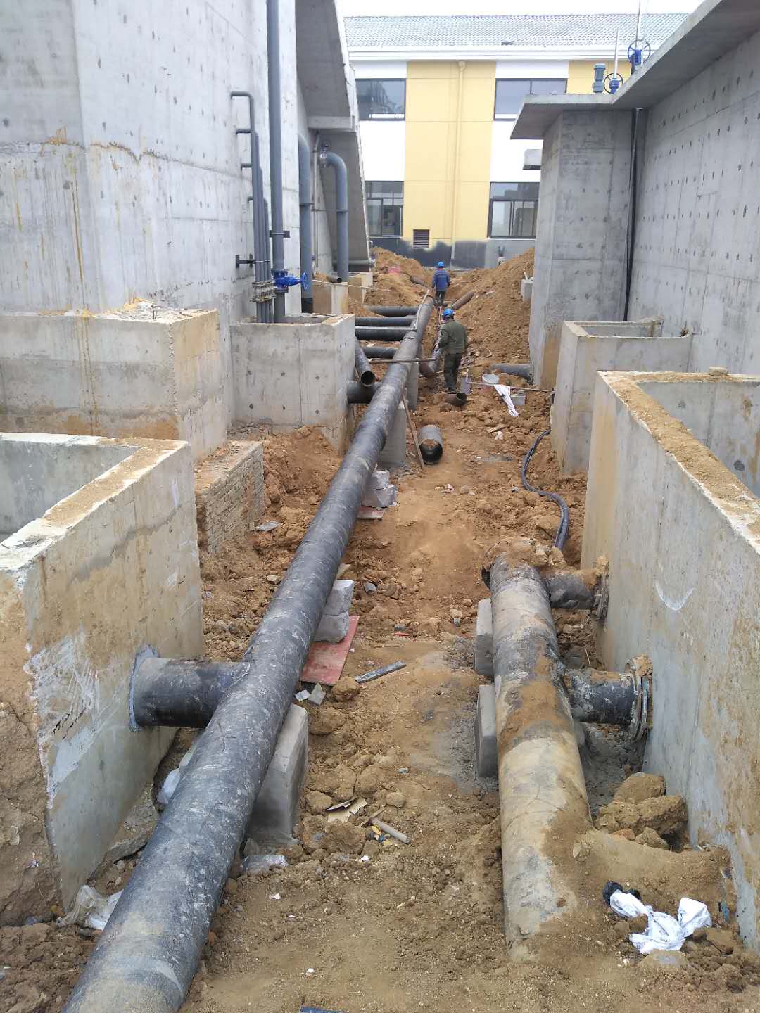 化工園區(qū)污水處理廠管道鋪設(shè)施工現(xiàn)場(chǎng)