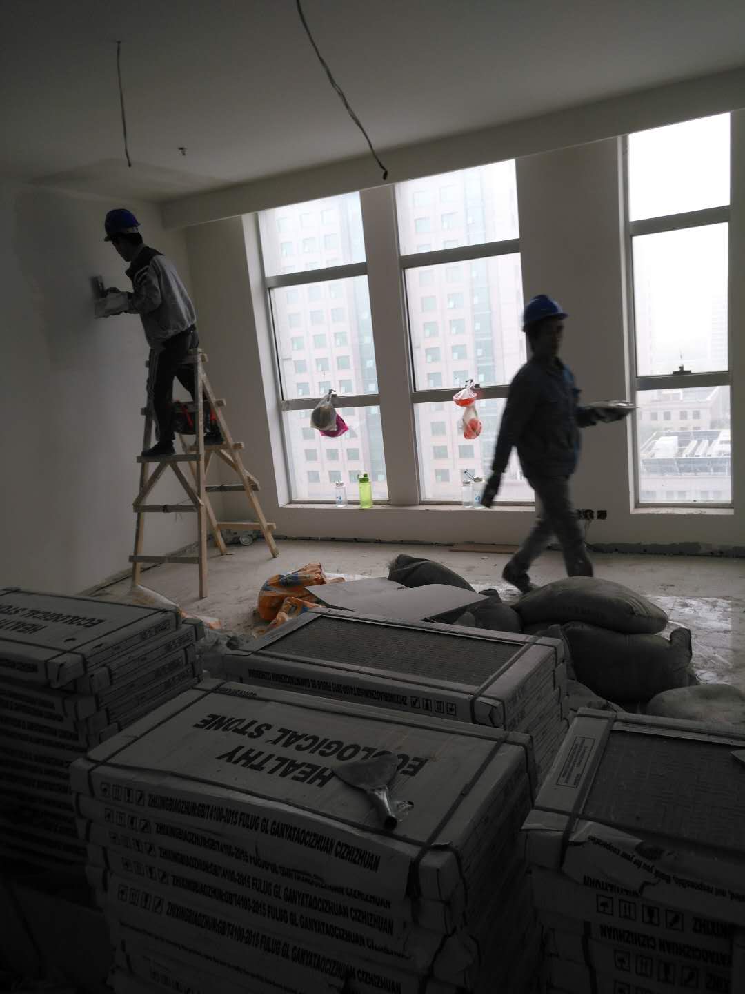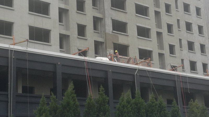 城西小區(qū)目前仍有接近200名工人在進(jìn)行墻體抹灰、水電安裝等作業(yè)。